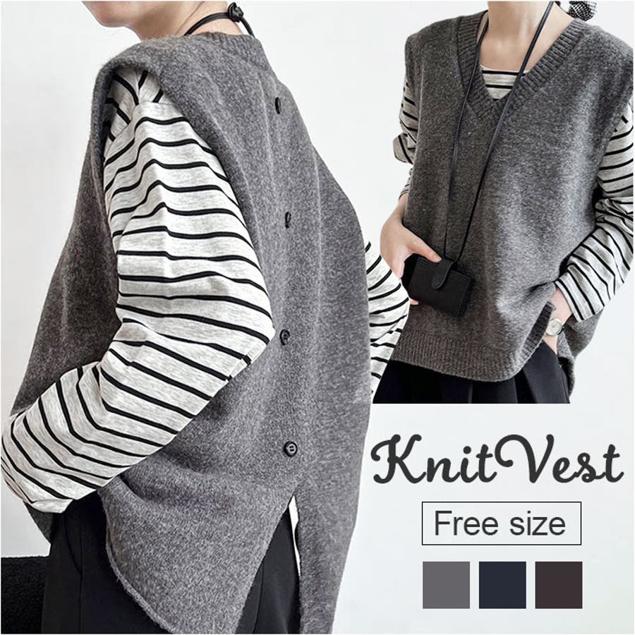 【キーワード】ニットベスト Vネックニットベスト チョッキ ジレ ウェストコート ノースリーブ 重ね着 レイヤード 秋 冬 秋冬 春 春秋 おしゃれ かわいい 前あき 前開き 可愛い シンプル 無地 トップス レディースファッション