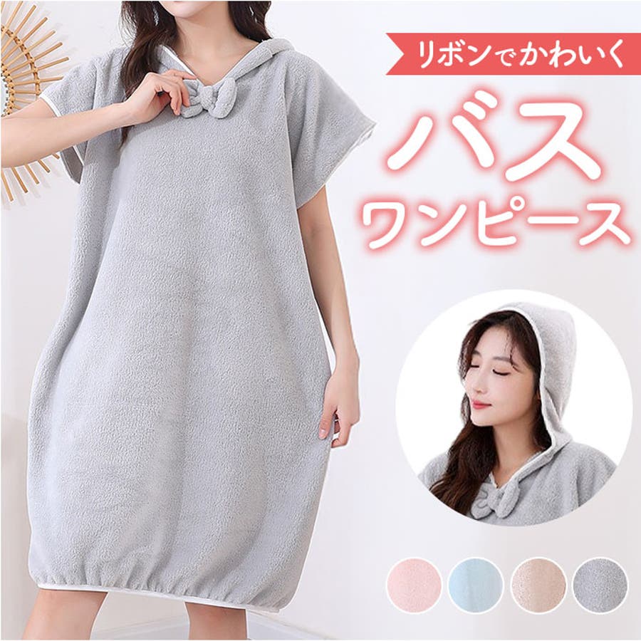 【キーワード】バスローブ バスワンピース ルームウェア ルームウエア 着るタオル 吸水タオル 着れる タオル リボン フレンチスリーブ 着る 吸水 速乾 湯上がり お風呂 かわいい 可愛い おしゃれ オシャレ