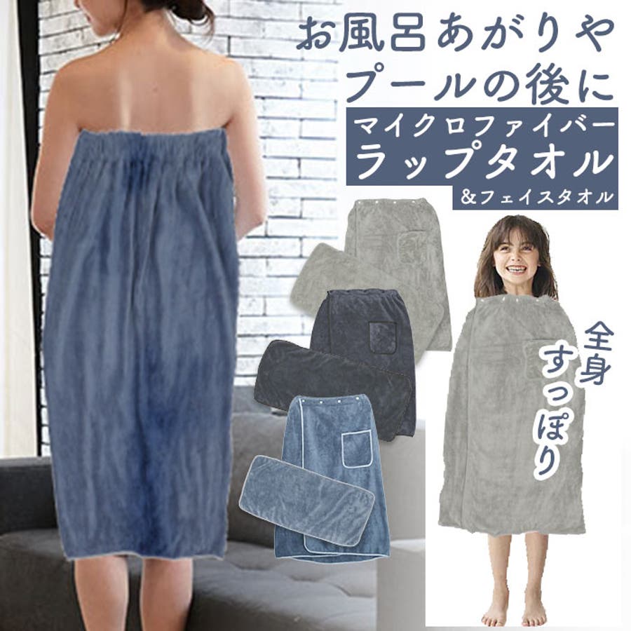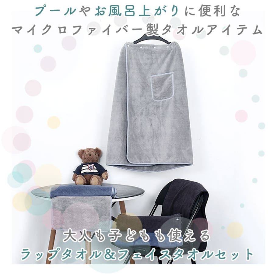 ・お風呂上りはもちろん、プールやジムでの着替え時も活躍!大判ラップタオルと使い勝手抜群のフェイスタオルのセット。