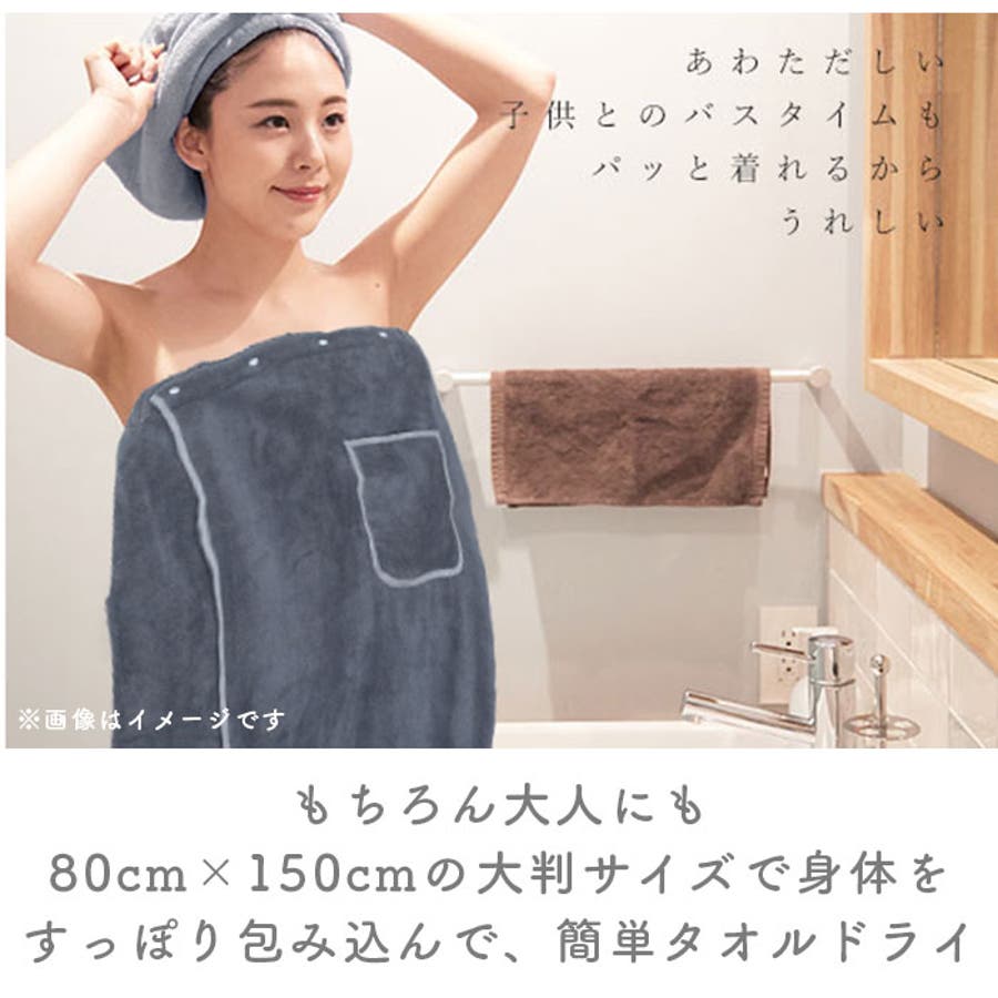80cm×150cmの大判サイズで身体をすっぽり包み込んで、簡単タオルドライ。