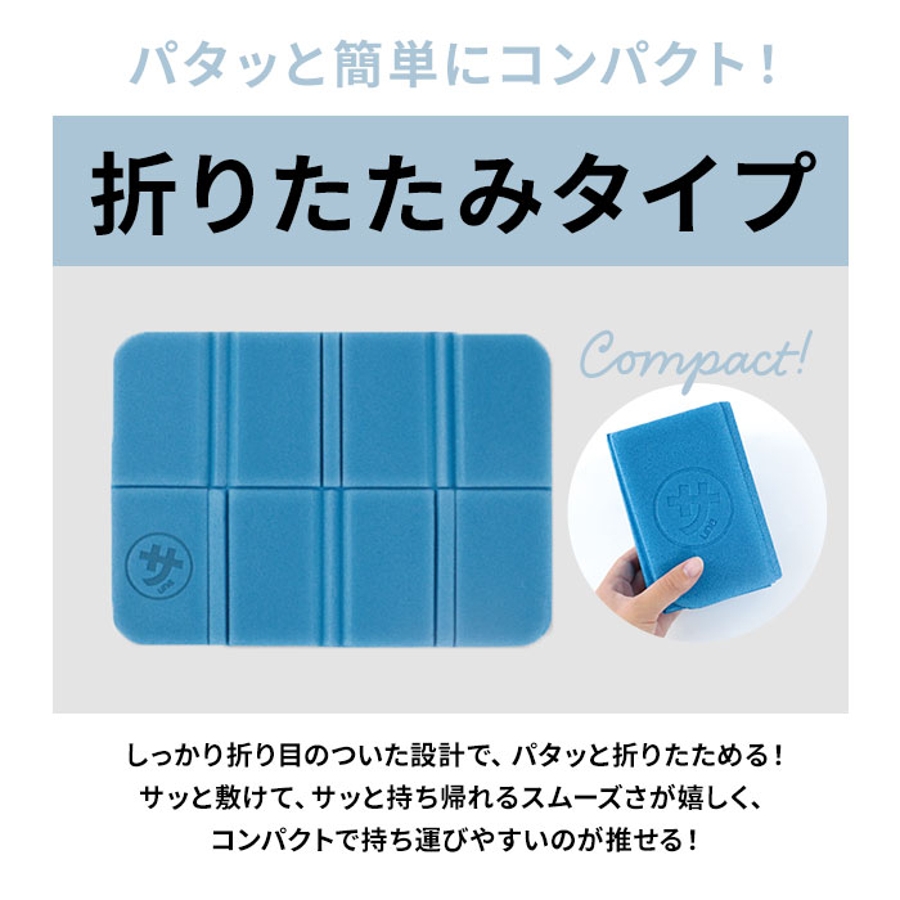 ・フラップを広げるように左右・上下にパッと広げて、サウナ室のベンチにササっと敷ける!コンパクトに持ち運べる折りたたみタイプ。