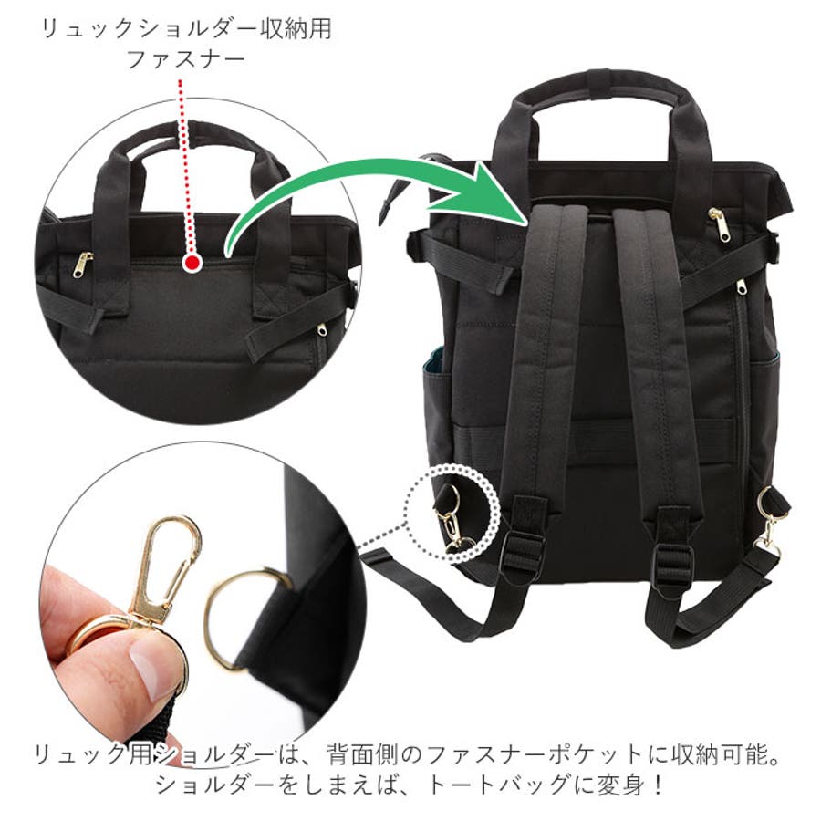 ・ショルダーベルトを背面側ポケットに隠して収納すれば、シンプルなトートバッグに変身!A4サイズの書類もすっぽり入るサイズなので、通勤用や通学用はもちろん、レッスンバッグなど使い方自分次第。