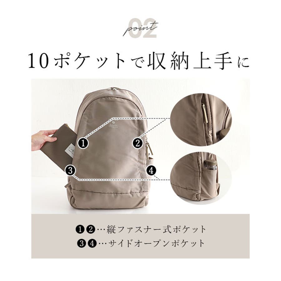 ・しっとり肌触りの良い、ナチュラルな質感のシンプルデザイン♪10ポケット付きでA4OKの多機能なデイパック。