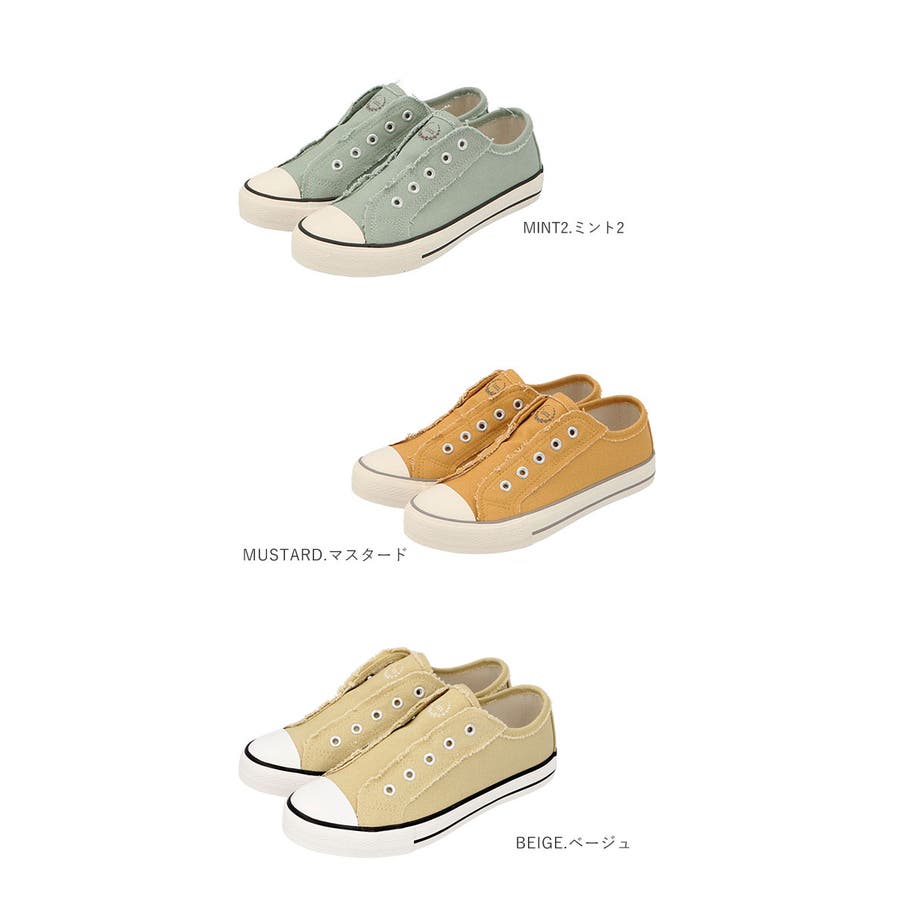 【商品説明】デイリーに活躍☆おしゃれで履きやすいスリッポンスニーカー。紐無しタイプのすっきりとしたデザインは、デイリーの着こなしに大活躍!ベロ部分の内側がゴム仕様になっており、脱ぎ履きラクチンです。カラーによって印象が異なるので、お気に入りを選んで♪