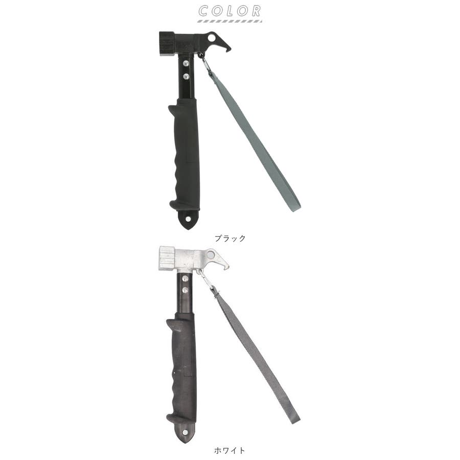 ・ハンマーヘッドの反対側は、ピンタイプのペグを抜くための「ホール」と、ソリッドステークの丸穴にひっかけるための「フック」を装備した汎用性の高い2WAY仕様。(※ソリッドステークとは・・・テントの設営等に使用される、鍛造という技術によって造られた非常に強固なペグのこと。円柱形のヘッドと、ハンマーのフックを引っかけるための丸穴が開いた構造が特徴。)