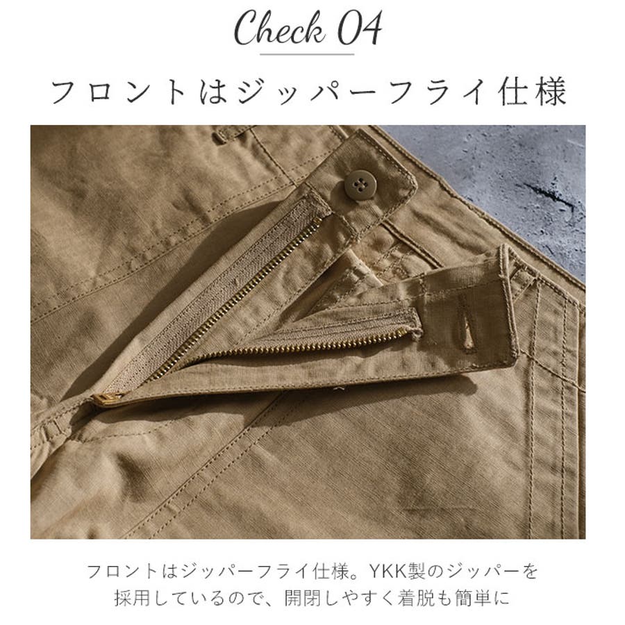 ・米軍が作業用として採用していたパンツで、フロントやバックに外付けのポケットが設置されている。機能性に優れたワークパンツ。