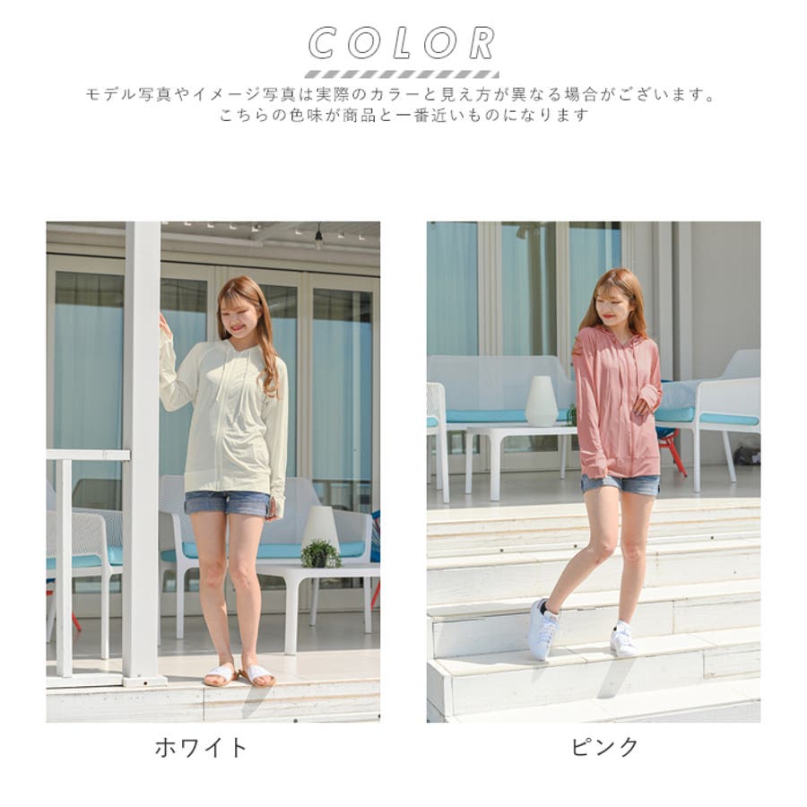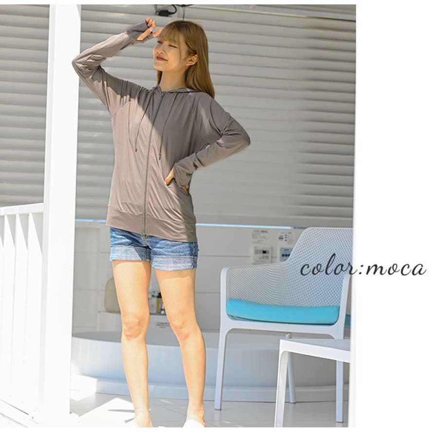 ・着脱しやすいジップパーカー。フード付きだからから頭部も紫外線から守ってくれる。