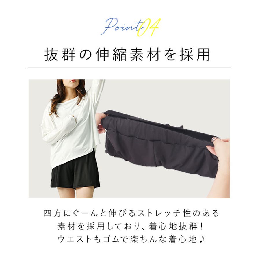 ・ショートパンツは穿きやすいウエストゴム仕様。両サイドに便利なポケット付き。