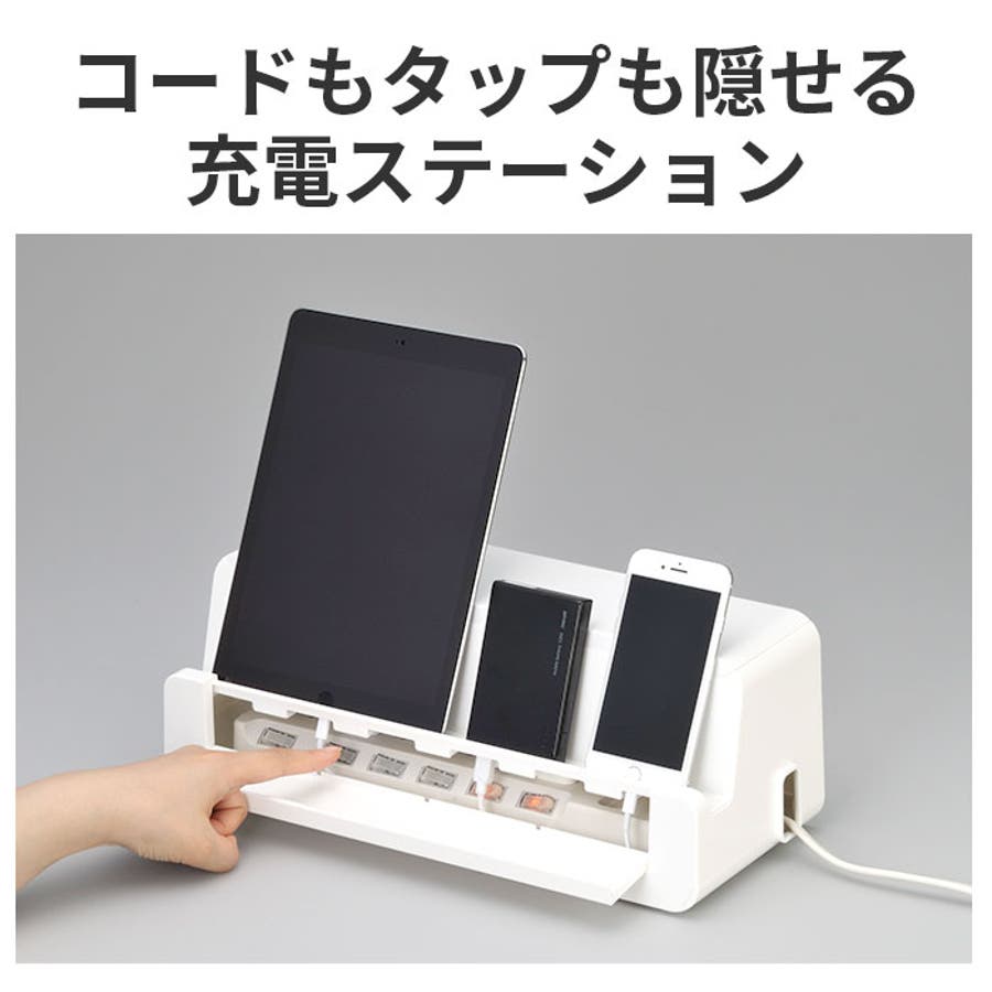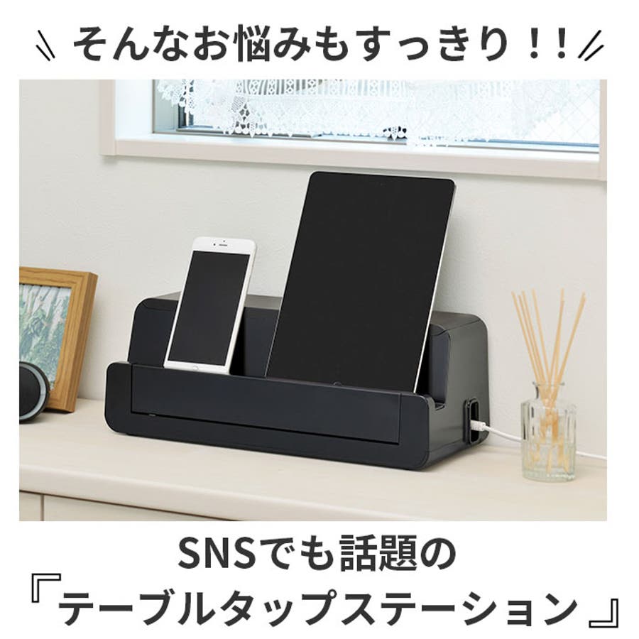 【キーワード】テーブルタップステーション L イノマタ化学 ケーブルボックス 大型 ケーブル 収納 ケーブル収納 ボックススマホスタンド 卓上 スマホ スマートフォン タブレット タップ収納 通販 おしゃれ シンプル 白 ホワイト 黒 ブラック 茶ブラウン