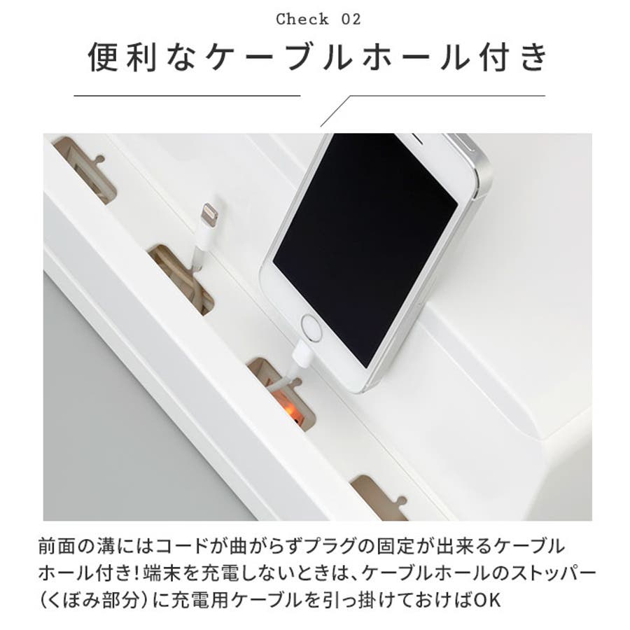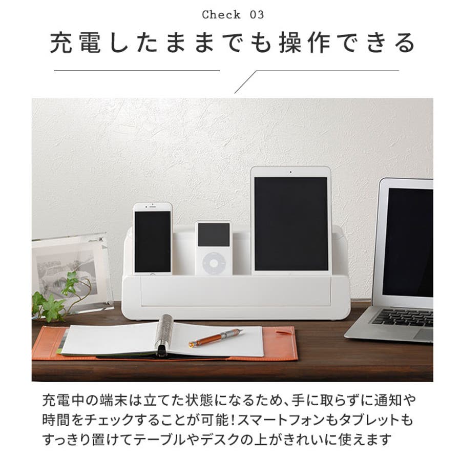 ・前面の溝にはコードが曲がらずプラグの固定が出来るケーブルホール付きで、スマートフォンもタブレットも音楽プレーヤーもまとめてスマートに充電、スマートに持ち出し♪
