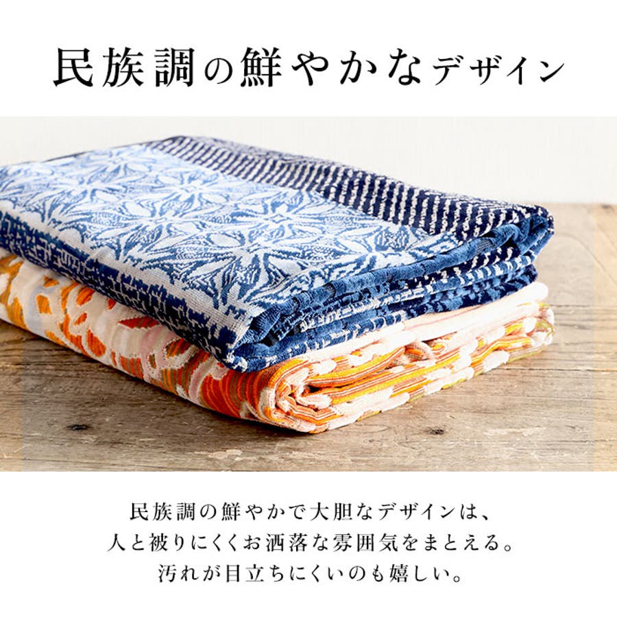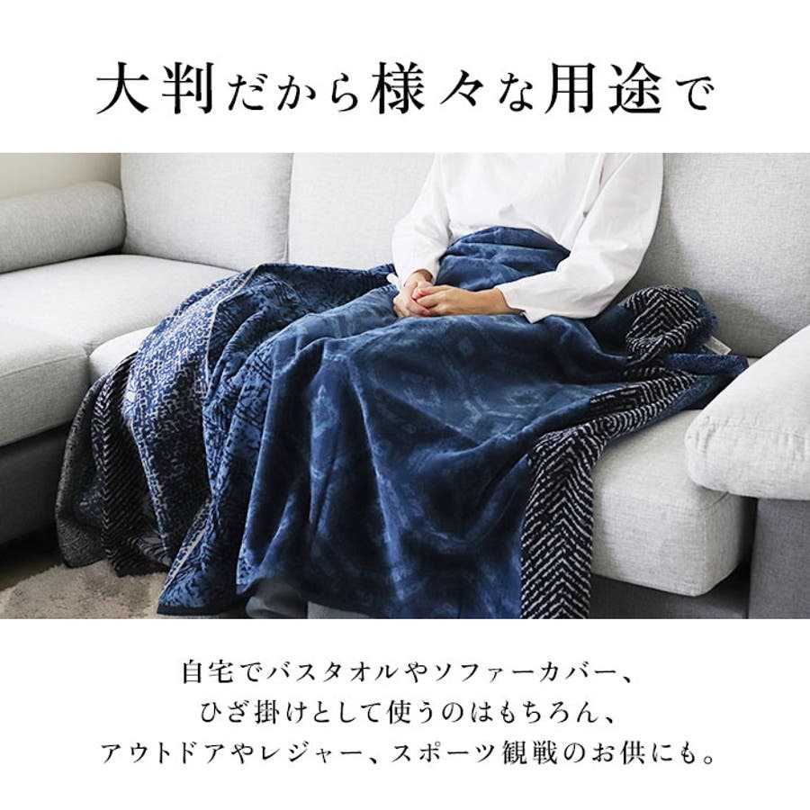 ・民族調の鮮やかで大胆なデザインは汚れが目立ちにくい◎自宅でバスタオルやソファーカバー、ひざ掛けとして使うのはもちろん、アウトドアやレジャー、スポーツ観戦のお供にも◎(※製品性質上、使用時に細かい毛が抜けやすくなっていますので、気になる場合は何度かお洗濯をされてからのご使用をおすすめします。)
