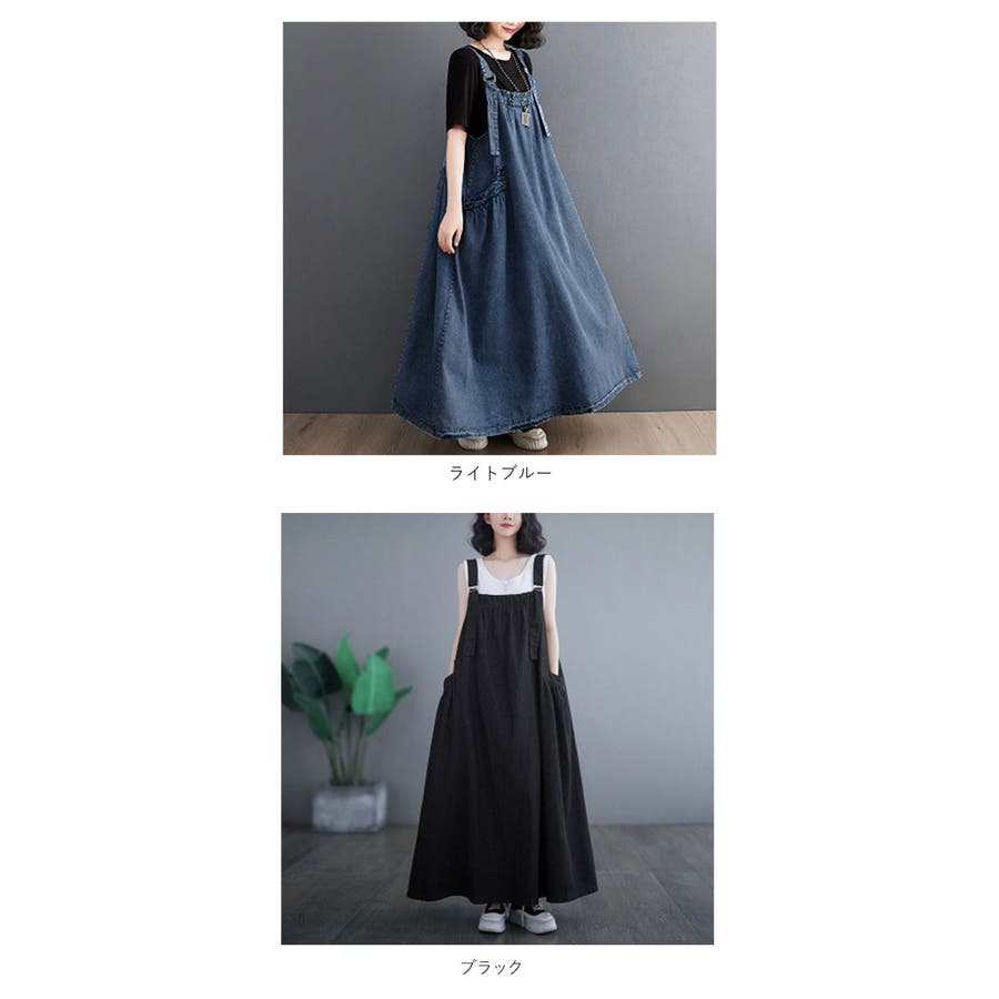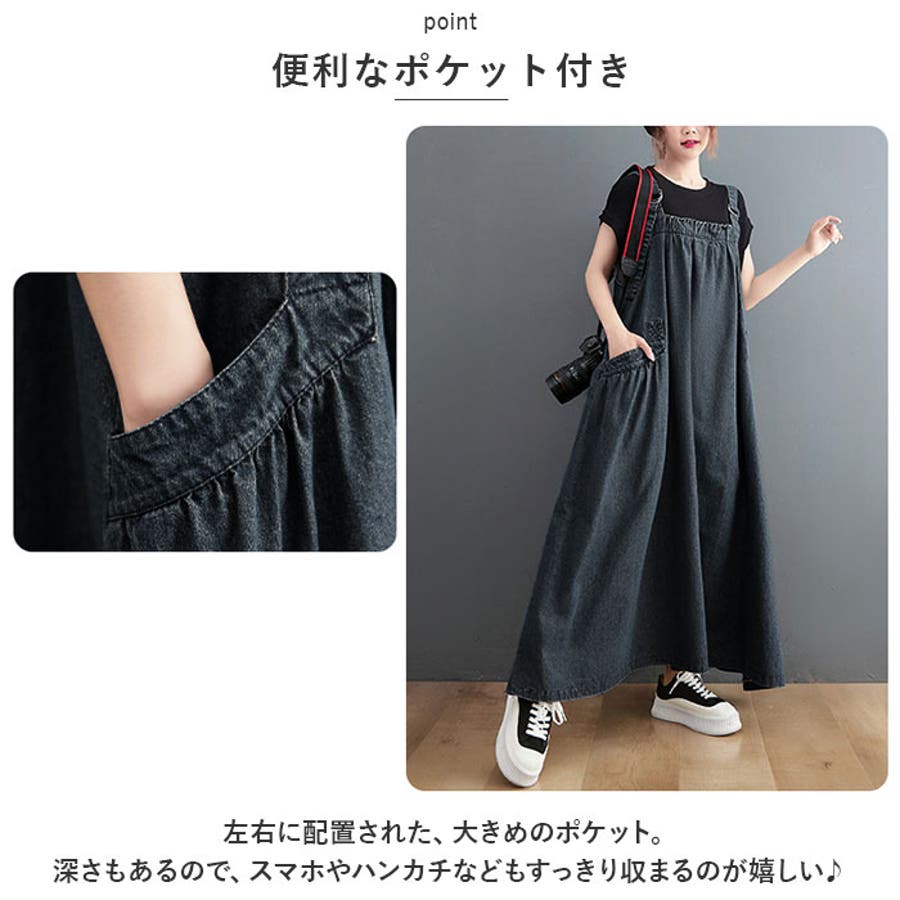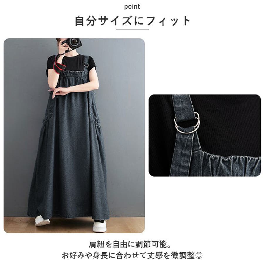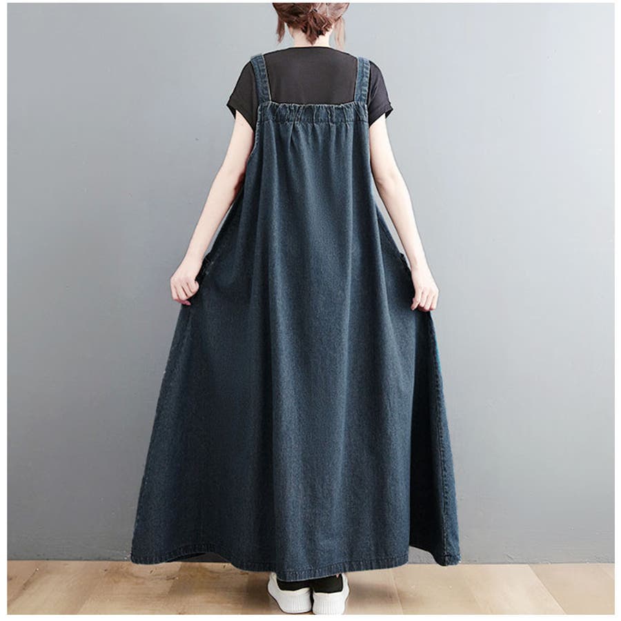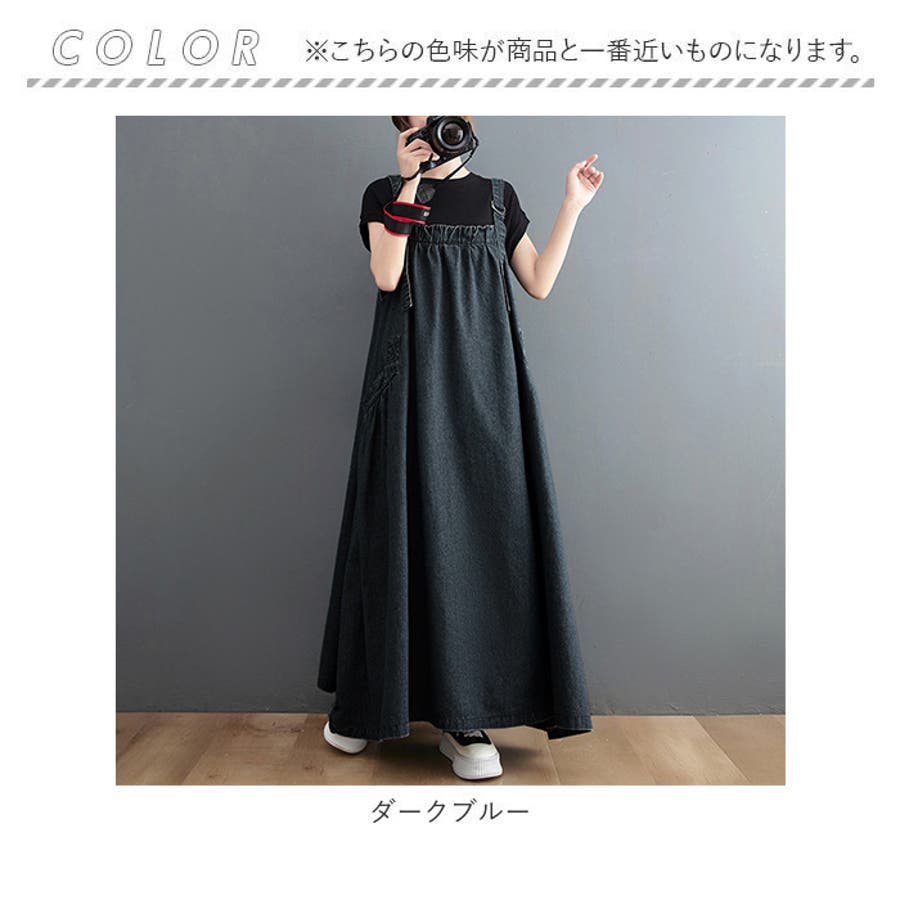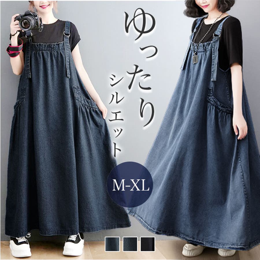 【キーワード】ジャンスカー デニムワンピース デニムワンピ オールインワン ワンピ マキシワンピース サロペット ロング ロング丈 ポケット付き ポケット Aライン ゆったり 大きいサイズ 夏 春 秋