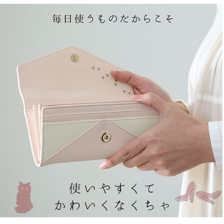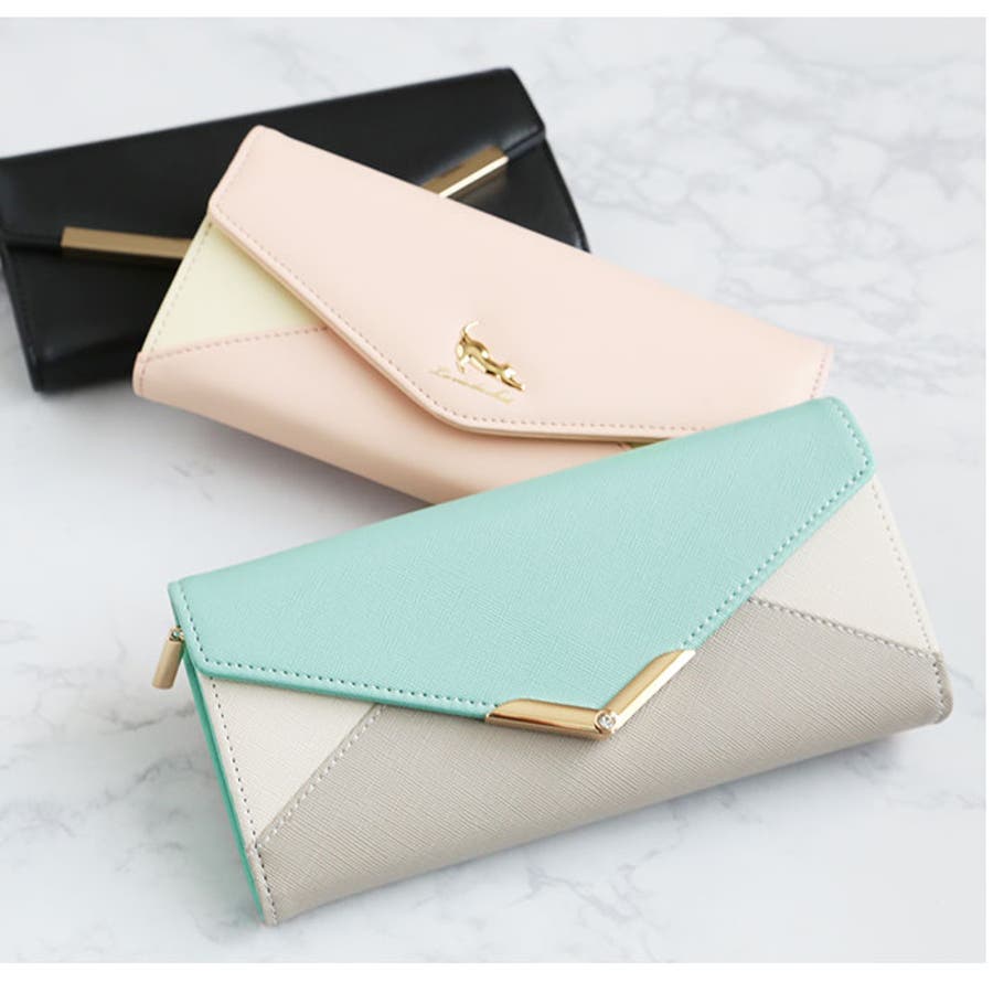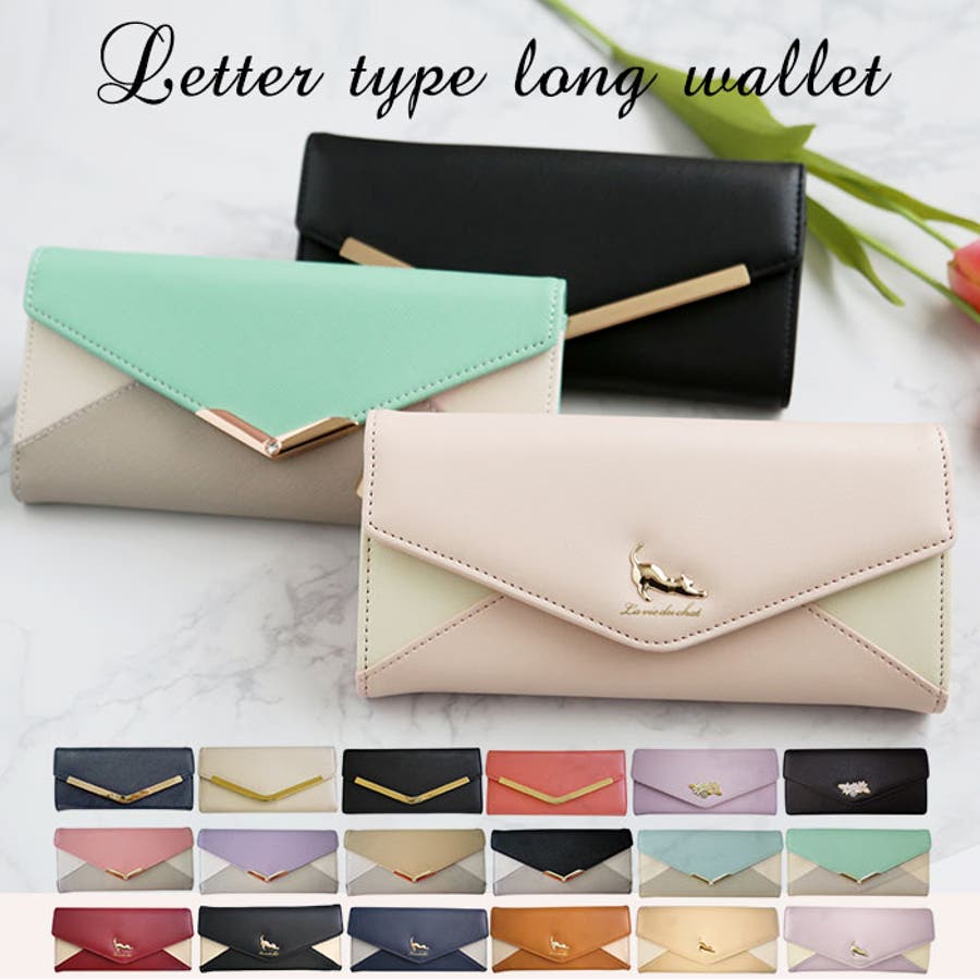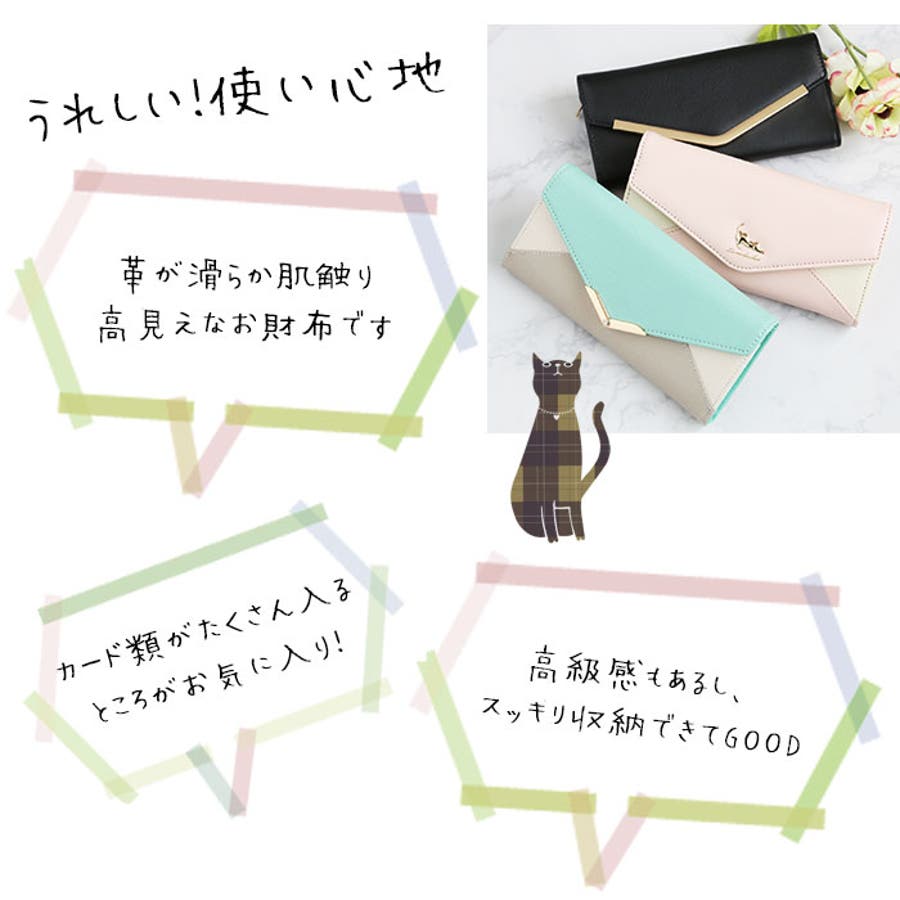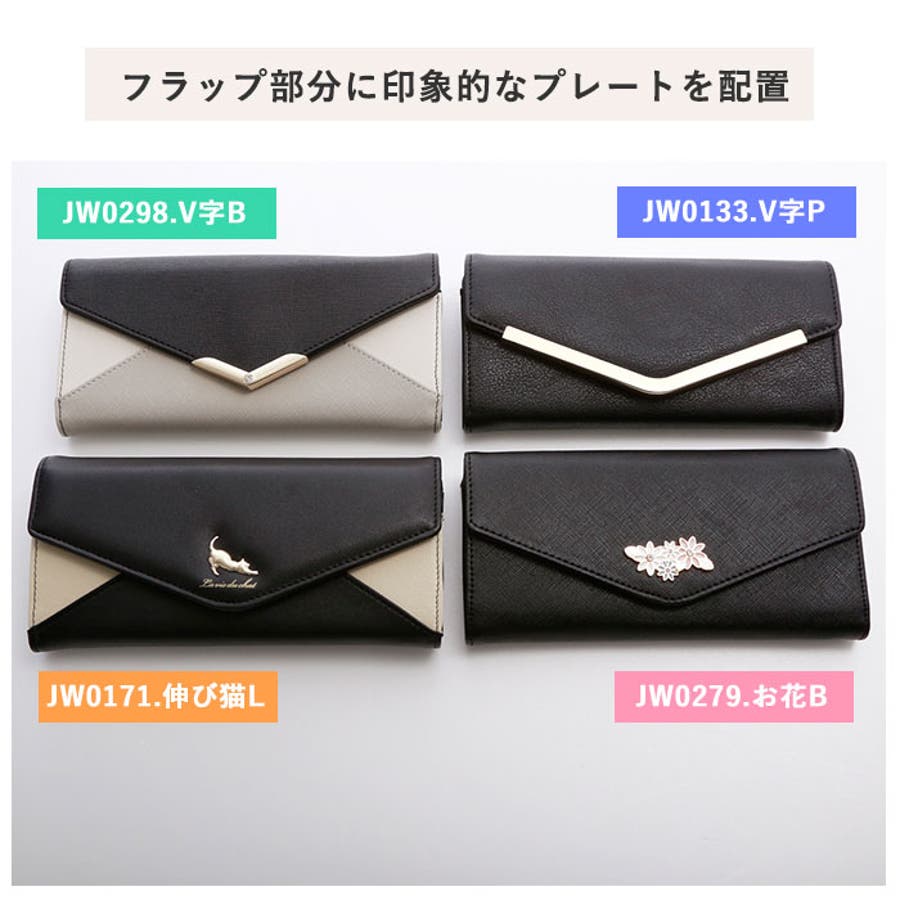 【キーワード】 長財布 レディース 大容量 通販 軽量 軽い 財布 新品 かぶせ 小銭入れあり 小銭入れ仕切りあり おしゃれ シンプル大人 かわいい 上品 きれいめ ネコ 猫 モチーフ 花 フラワー プレート レター型 配色 切り替え ツートン バイカラー V字ビジュー フェイクレザー 合皮