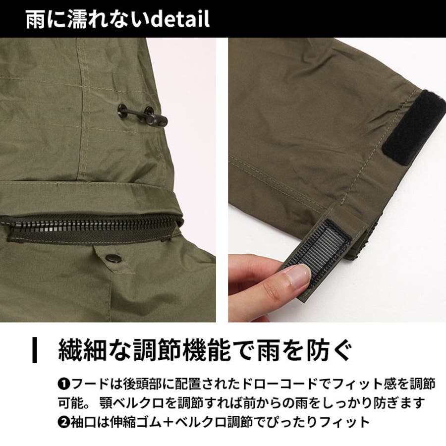 ・フロントはファスナーとスナップボタンのダブル構造で雨をブロック。左右のポケットも雨水が入り込みにくい構造なのも嬉しいポイント。