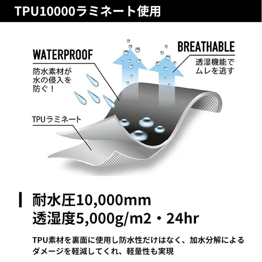 【注意点】※TPUラミネートは素材の材質として強い摩擦を受けると防水面が破れたり、?離する恐れがありますのでご注意下さい。