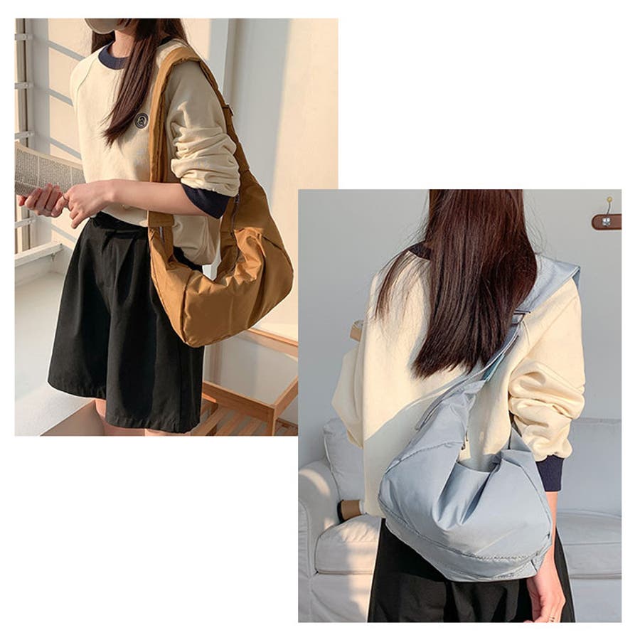 ・ショルダー部分は太めでバッグ本体と同じナイロン素材。肩が痛くなりにくいのもポイント。