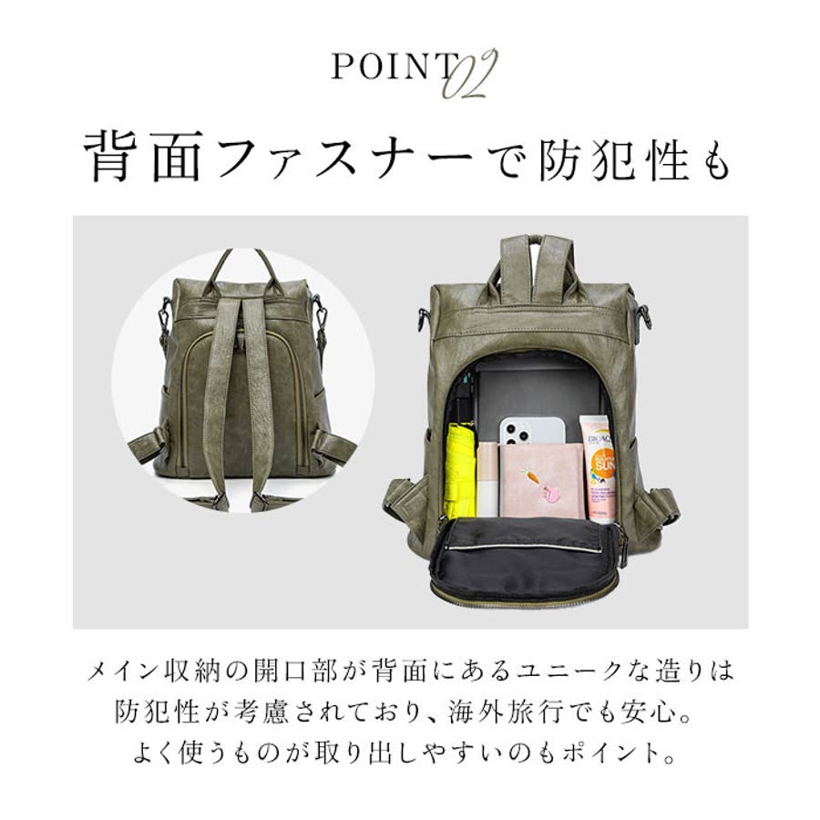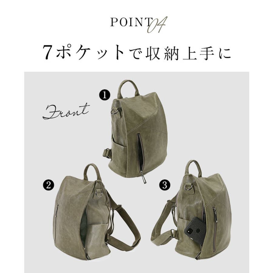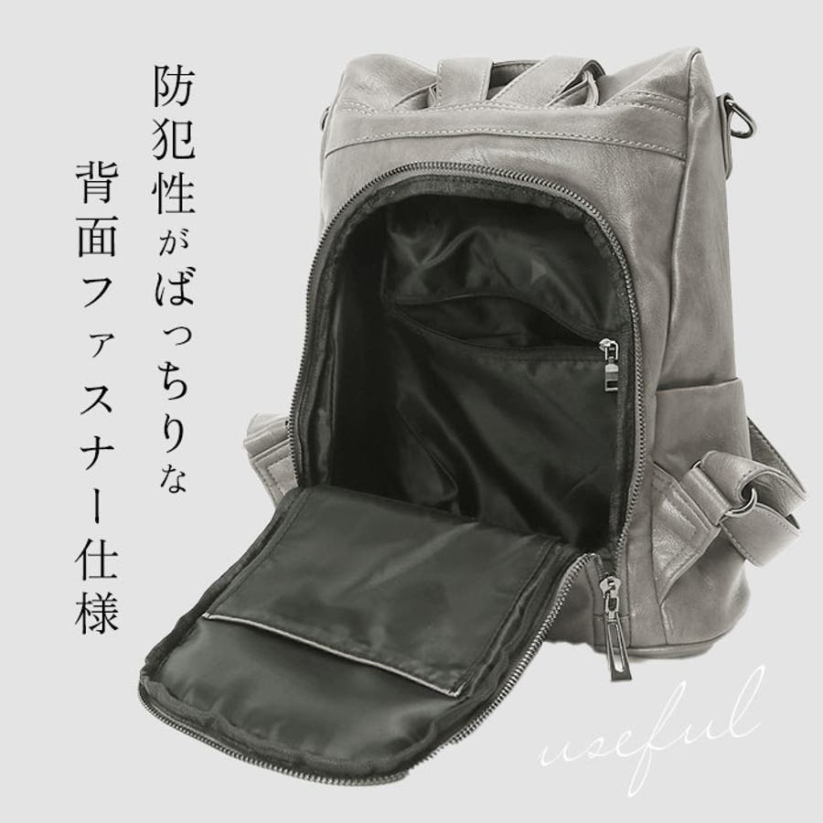 ・収納力抜群の7ポケット仕様!落ち着いたフェイクレザーの外観に、防犯性をプラスした3WAYミニリュック。
