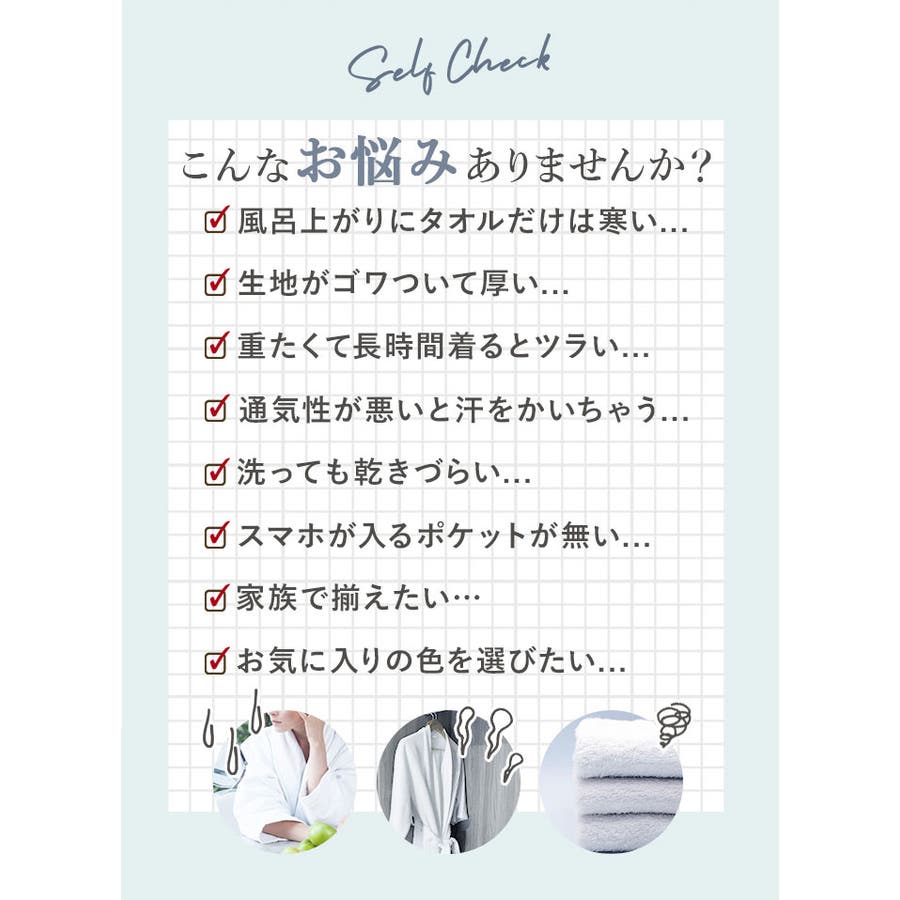 ・お風呂上がりの濡れた体に羽織ってウエスト紐を縛るだけ!