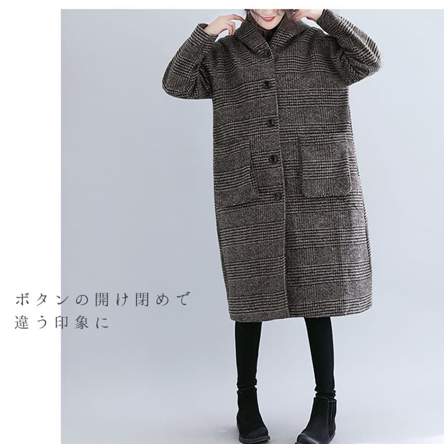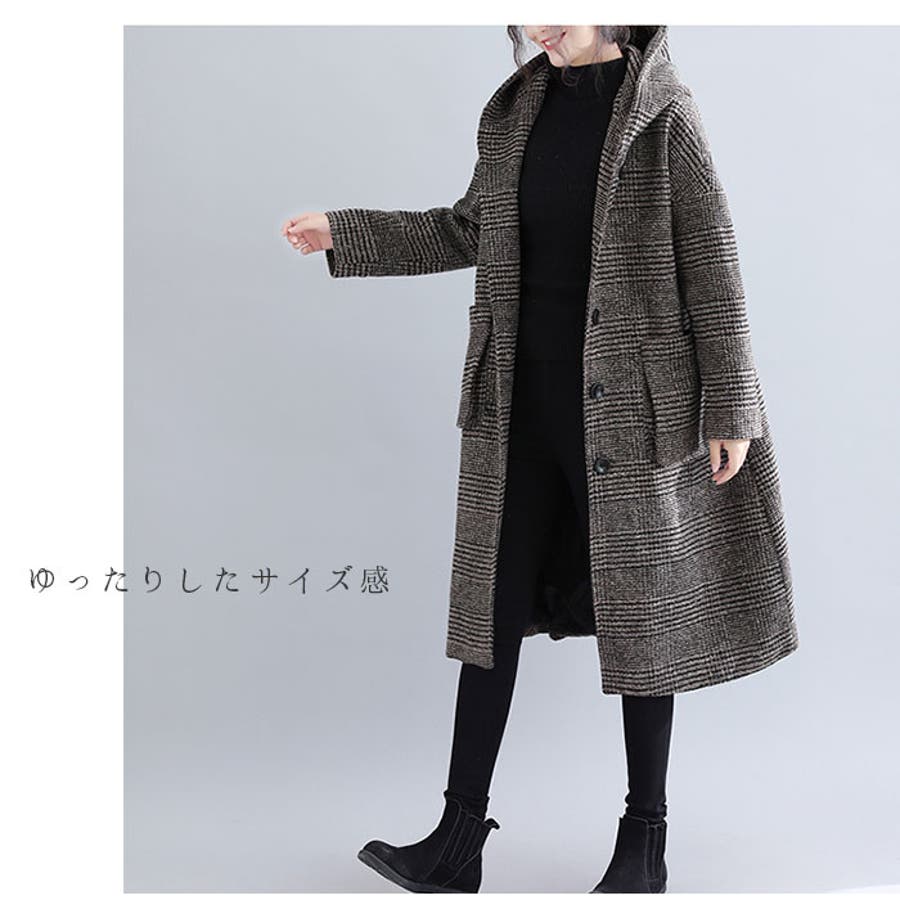 【キーワード】ロングコート フーデットコート ロング丈 ロング 冬 秋冬 秋 フード付き おしゃれ シンプル ゆったり チェック グレンチェック 千鳥格子 きれいめ 大人 かわいい 可愛い 通勤 ビジネス きちんと アウター レディースファッション