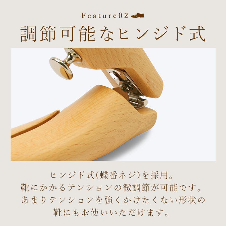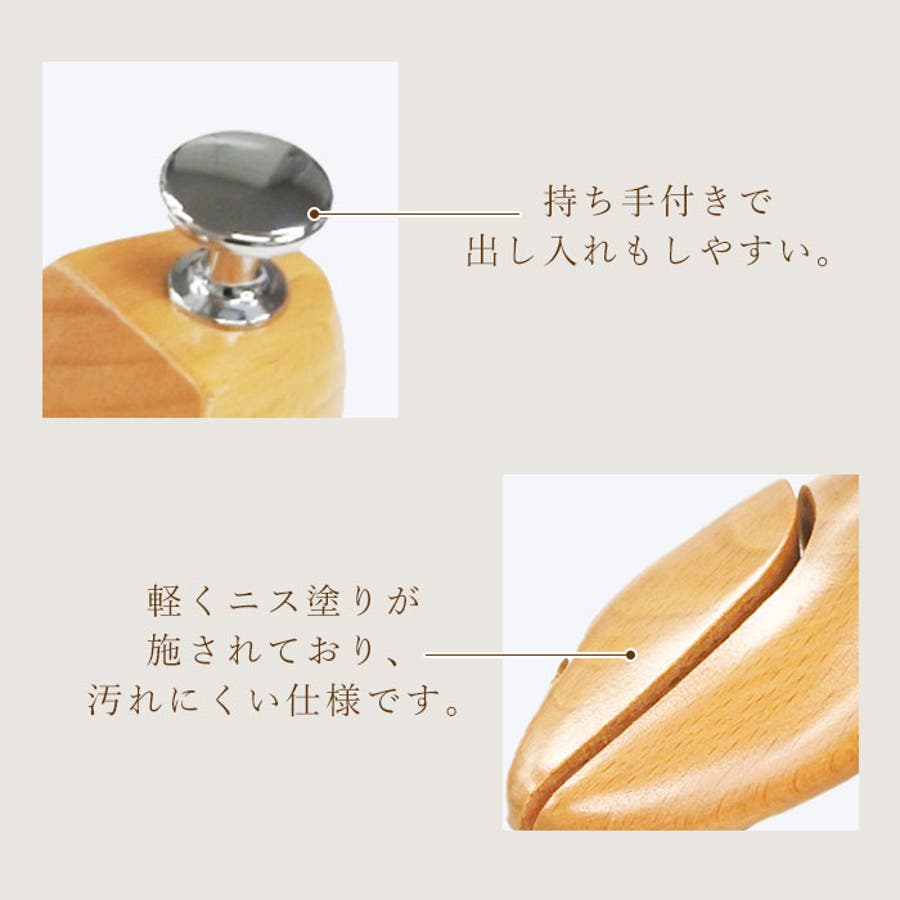 ・梅雨から秋口まで気になる湿気から靴を守ってくれる吸湿性に優れたブナ材を採用。