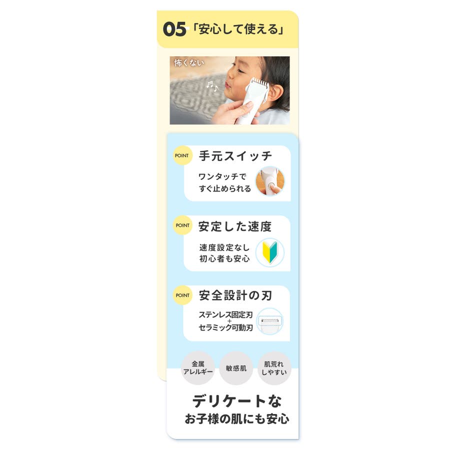 ・静音モーターでお子様が怖がらない!静音バリカンプロ技が新登場。