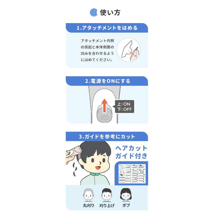 ・ヘアカットガイド付きだから自宅で本格ヘアカットできる♪