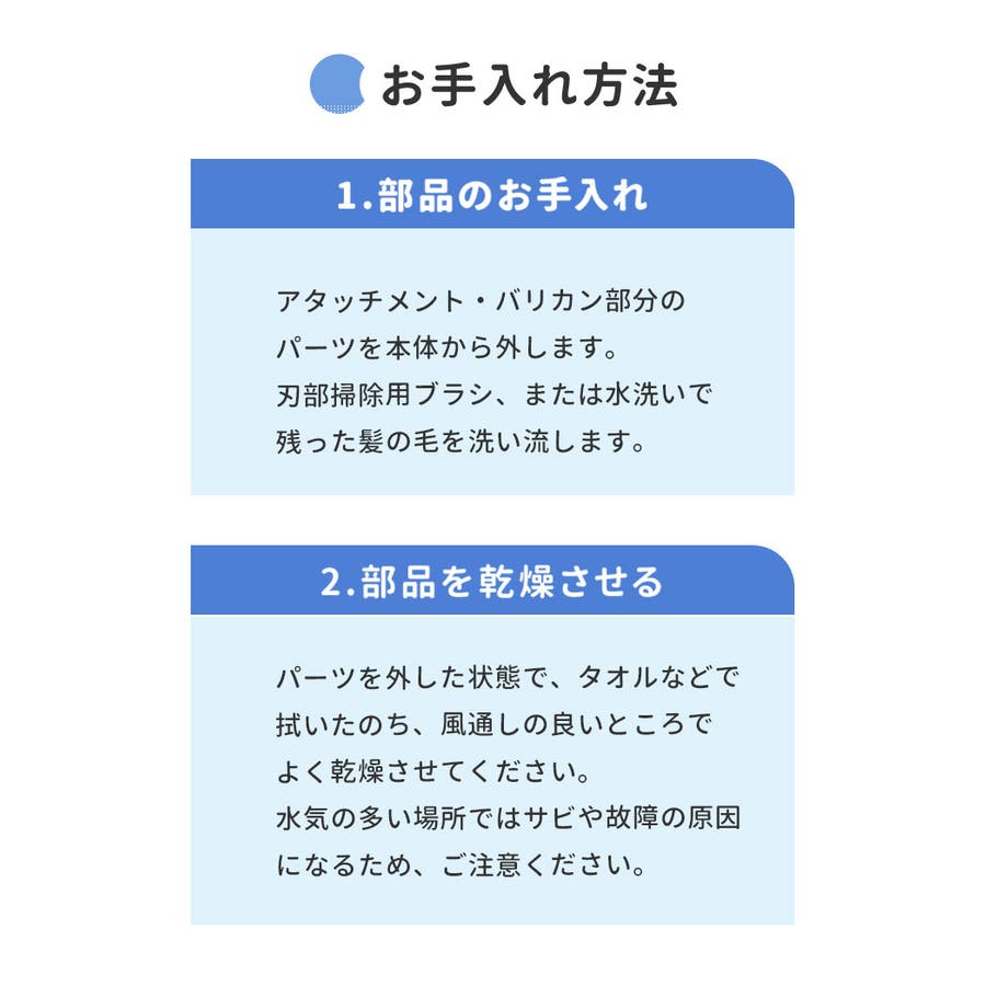 ・ヘッド部分、バリカン部分は水洗い出来るからお手入れ簡単。