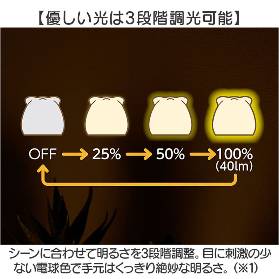 【優しい光は3段階調光可能】