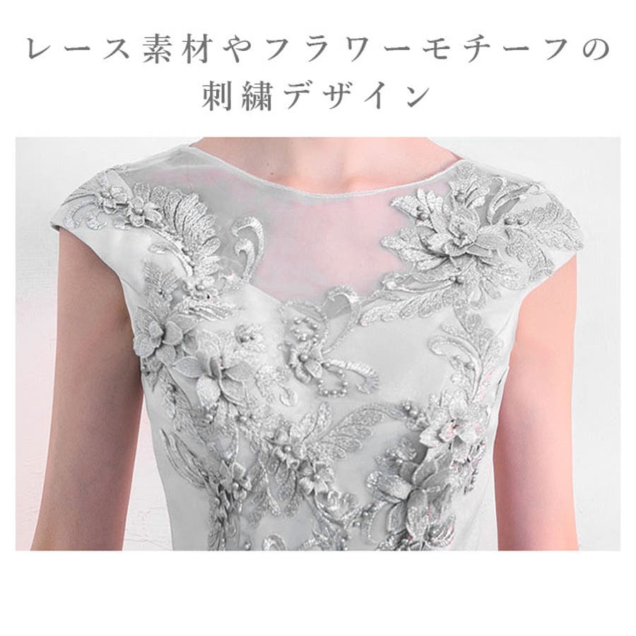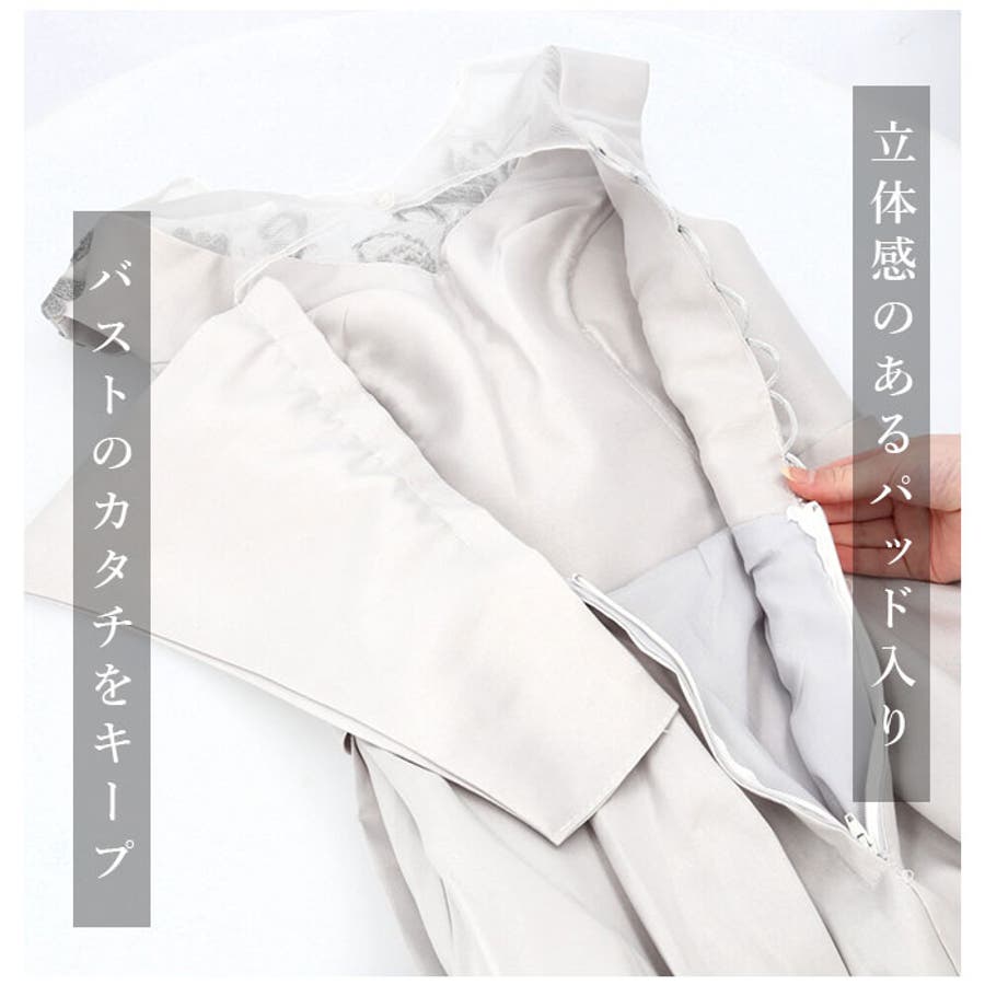 ・上身頃部分に取り入れた、レース素材やフラワーモチーフの刺繍デザインがアクセント。