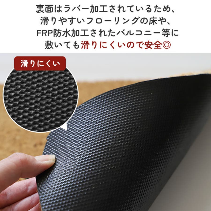 ・裏面はラバー加工されているため、滑りやすいフローリングの床や、FRP防水加工されたバルコニー等に敷いても滑りにくいので安全。
