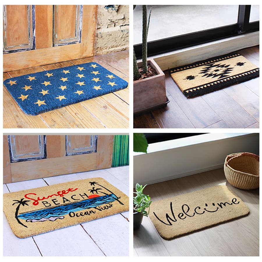 ・シンプルなウェルカムサインいりのデザインから、キュートなスマイル柄、南国調のインテリアにちょうどいいトライバルブラックなど、柄のバリエーションも豊富。