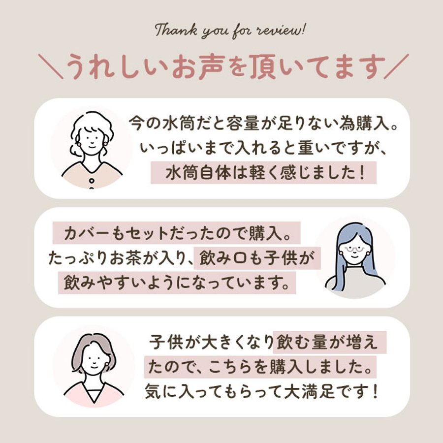 大きい水筒を探していて水筒カバーもセットだったので購入しました。たっぷりお茶が入ります。飲み口も子供が飲みやすいようになっています。トトロの絵柄もとても可愛くてお気に入りです。