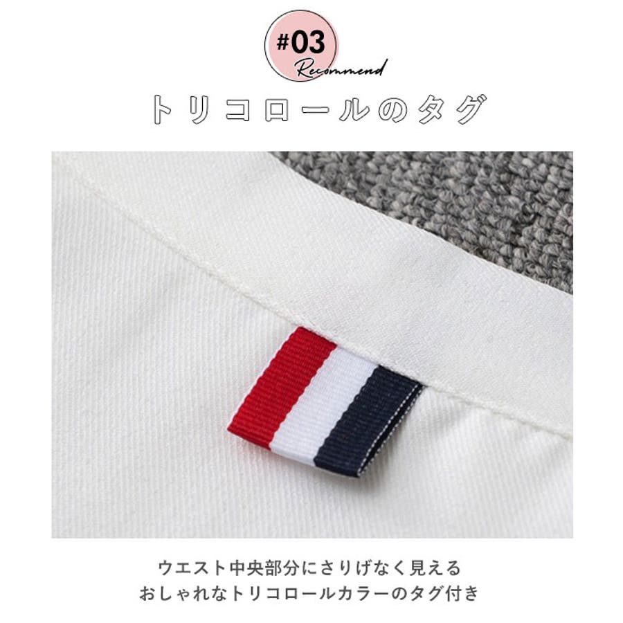 ・ウエスト中央部分に、さりげなく見えるおしゃれなトリコロールカラーのタグ付き。