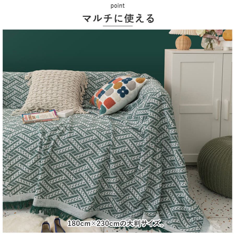180×230の大判サイズ。ソファーカバー、ベッドカバー、ラグなど使い方いろいろ!キャンプやグランピングなどでも大活躍!