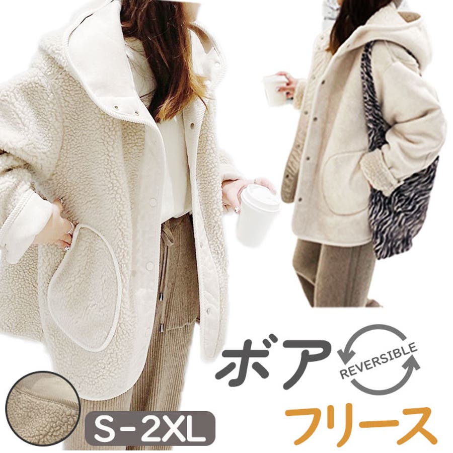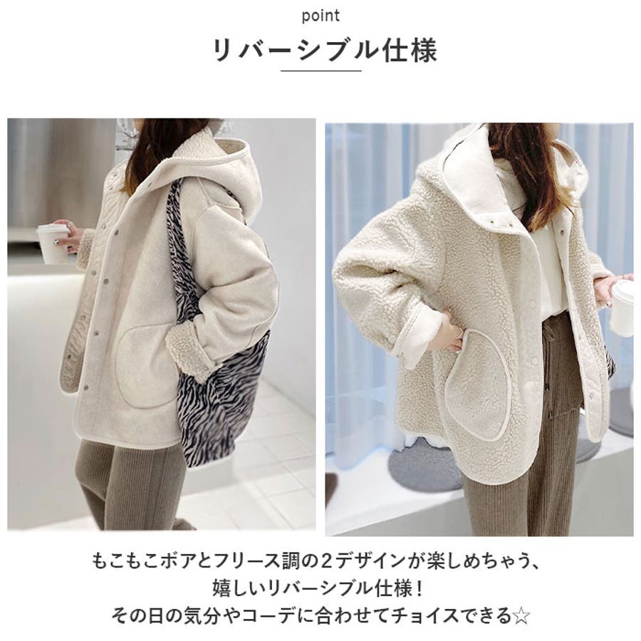 【キーワード】ブルゾン パーカー アウター ジャケット レディース リバーシブル もこもこ ふわふわ おしゃれ 大人 ゆったり 暖かい あったか 秋 冬 厚手 かわいい 可愛い ポケット 防寒 スタイリッシュ きれいめ カジュアル シンプル