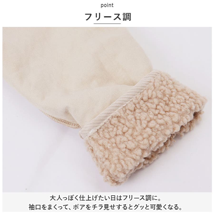 ・大人っぽく仕上げたい日はフリース調に。袖口をまくって、ボアをチラ見せするとグッと可愛くなる。