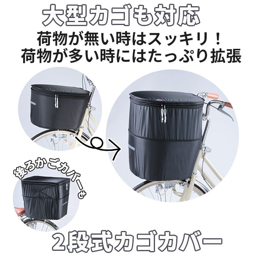 ・荷物が無いときはすっきり!多いときにはたっぷり収納!前カゴ用カバー、後ろカゴ用カバーともに、その日の荷物の量に合わせてファスナーで2段式に容量アップ。