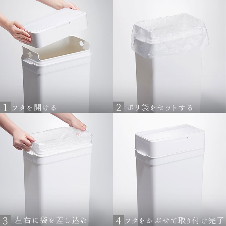 ※ご使用の際は、市販されているポリ袋(45リットル推奨)をセットしてください。