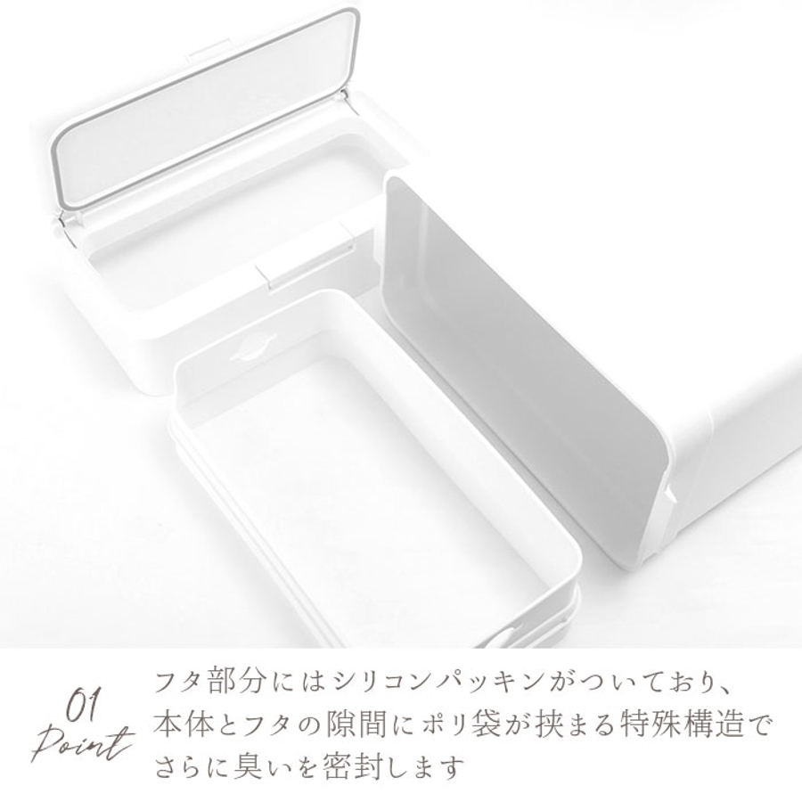 ・フタ部分にはシリコンパッキンがついているだけでなく、本体にフタの溝が重なることでニオイ漏れを防ぐ特殊構造。