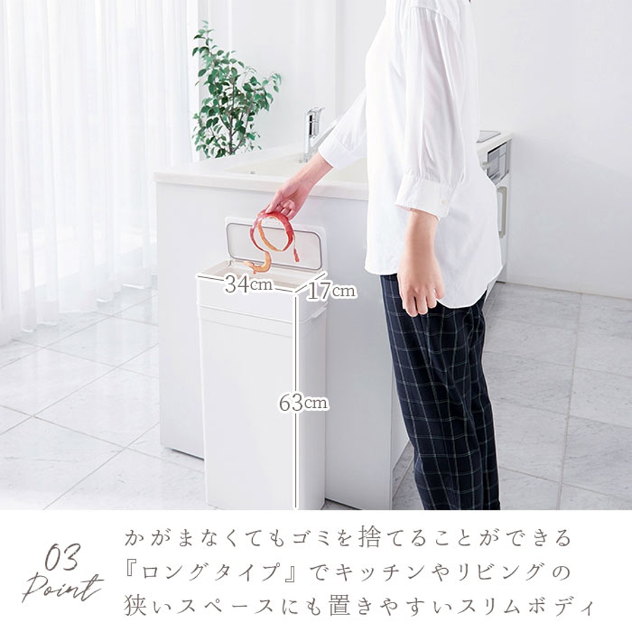 ・屈まなくてもゴミを捨てることができ、しかもカウンター下にも設置しやすいちょうど良い高さ。※念のためサイズをご確認ください。