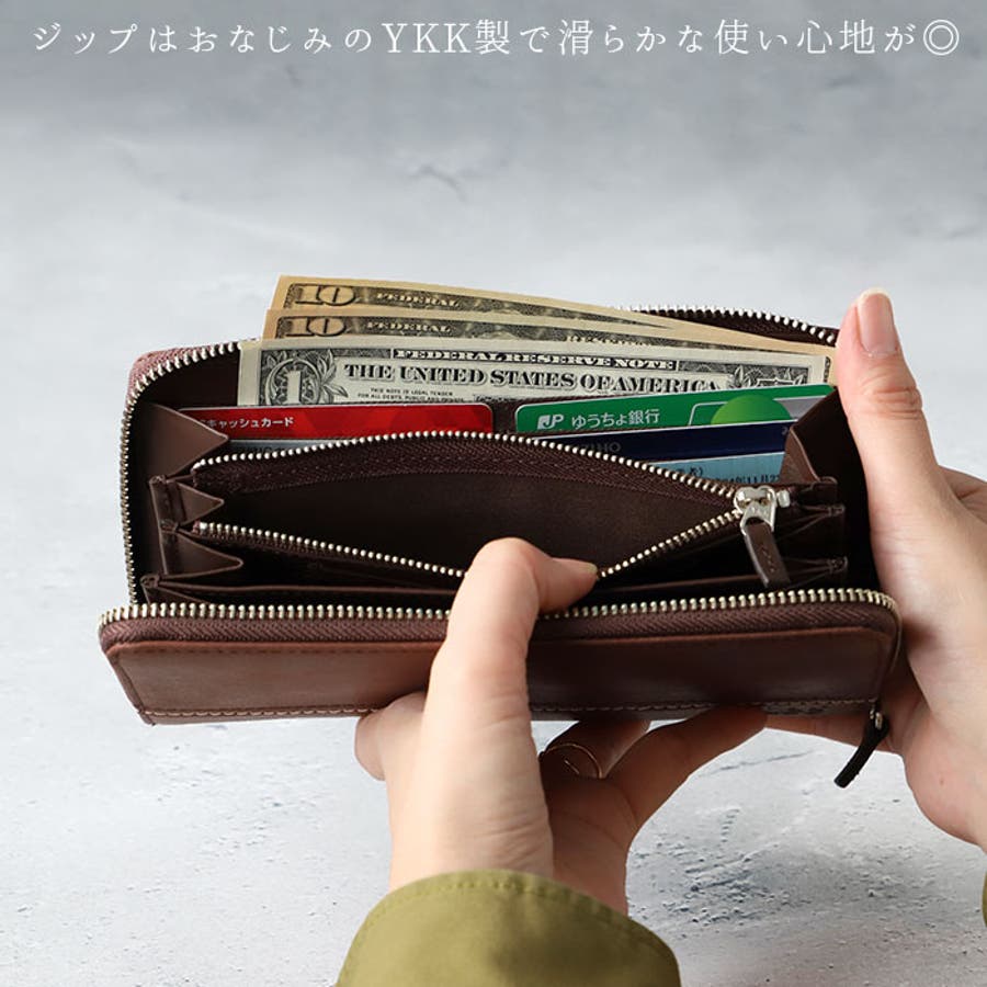 ・お札入れ3ヶ所・カード入れ13ヶ所・ジップ小銭入れ1ヶ所・フリーポケット2ヶ所・バックポケット1ヶ所と使い勝手も抜群。
