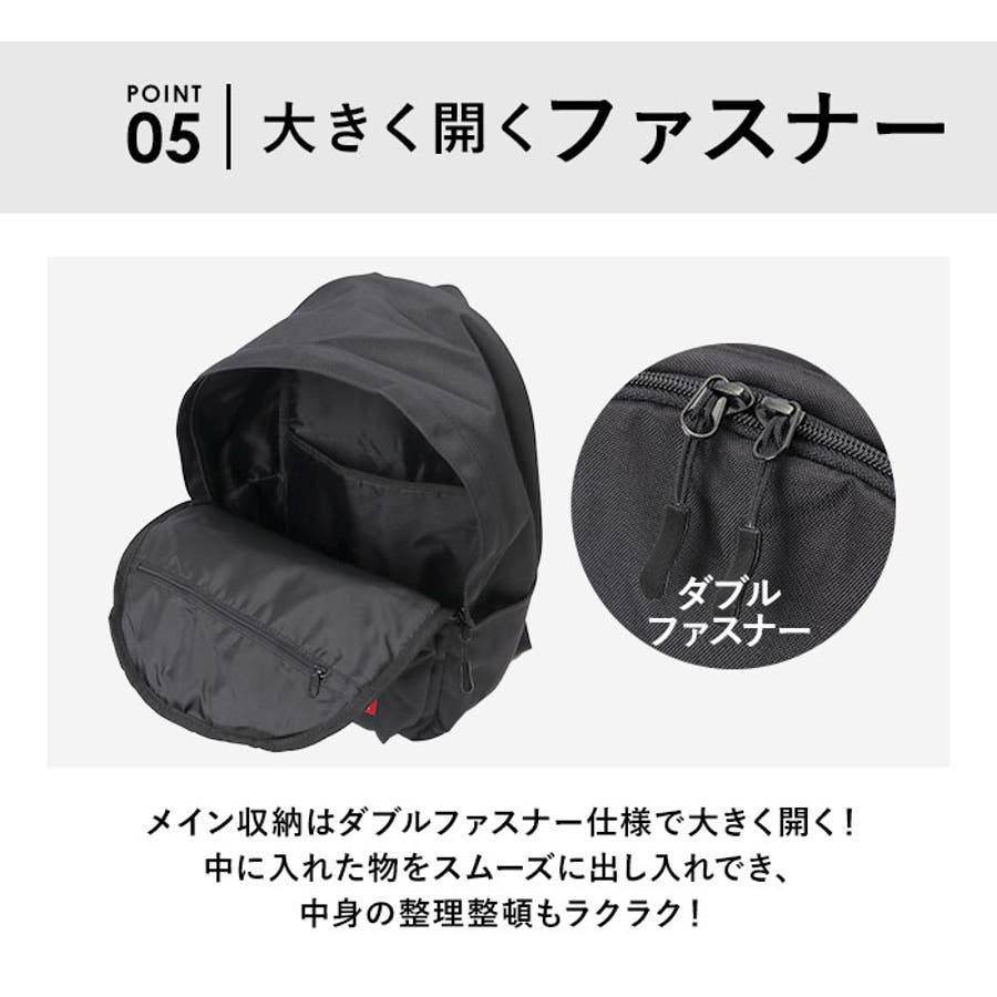 ・メイン収納のファスナーはダブル仕様。必要な物を取り出しやすく使いやすい◎
