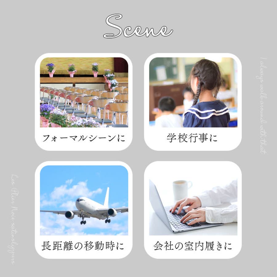 ・入学式や授業参観などの学校行事や、オフィスでの替え靴・おけいこ教室など様々なシーンで大活躍。ビジネスシーンにマッチするシックなカラーも魅力のひとつ。