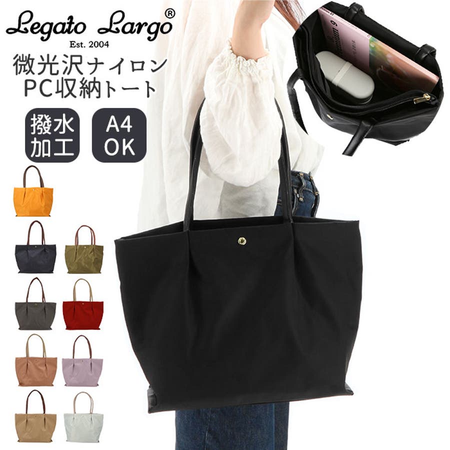 【キーワード】A4 大きめ 通勤 通学 ナイロン 可愛い おしゃれ 上品 きれいめ 通勤バッグ 軽量 軽い PC 13インチ 肩楽 かたらく Legato Largo PC収納トート 撥水微光沢ナイロン LH-L0001 レディースバッグ