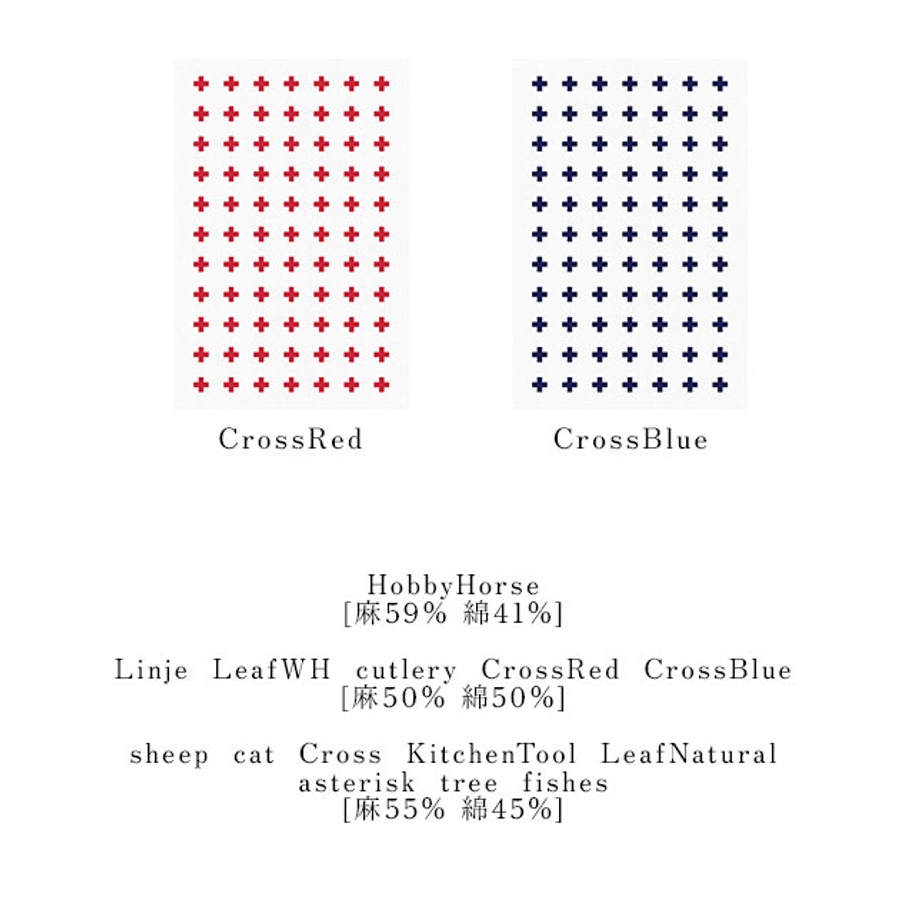 | 柄 | asterisk / cat / Cross / cutlery / fishes / KitchenTool / Leaf Natural / Leaf WH / Linje / sheep / tree / HobbyHorse / CrossRed / CrossBlue |