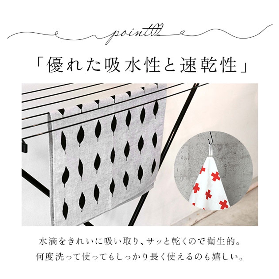 使うほど暮らしに馴染むキッチンタオル♪綿麻混合で乾くのが早く丈夫な作り!布巾、台拭き、手ぬぐい、キッチンマットと色々使えて便利です。可愛い柄なので何枚も揃えたくなりますね。