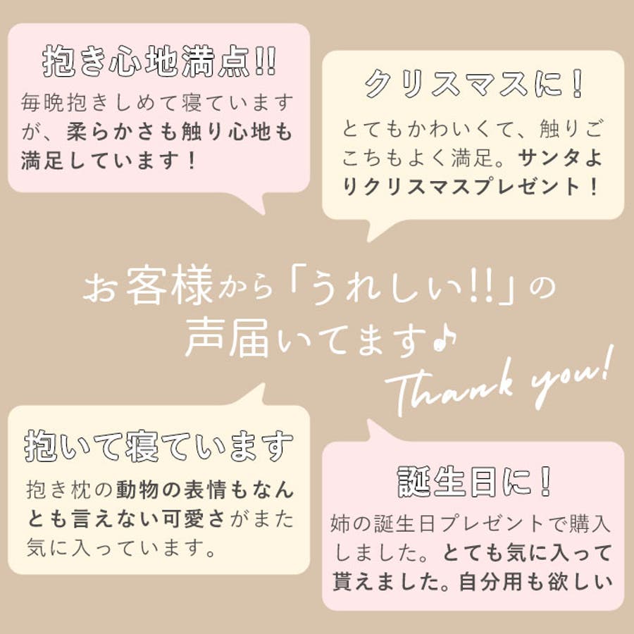 ・しっとりもちもちで滑らかな触感と柔らかな抱き心地で、かわいい動物たちが穏やかな眠りへと誘ってくれそう♪