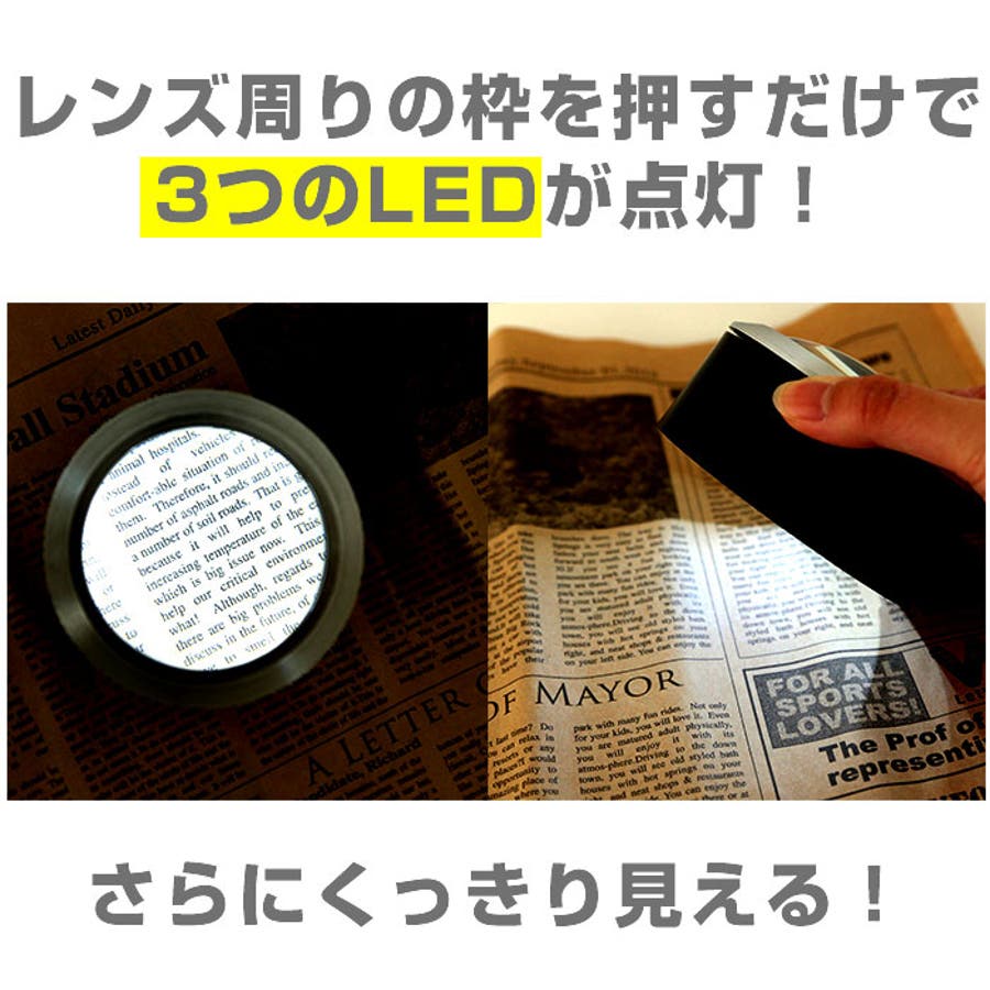 ・手元が暗いとき、レンズ周りの枠を押すだけで3つのLEDが点灯!明るく簡単ワンタッチで見やすい!