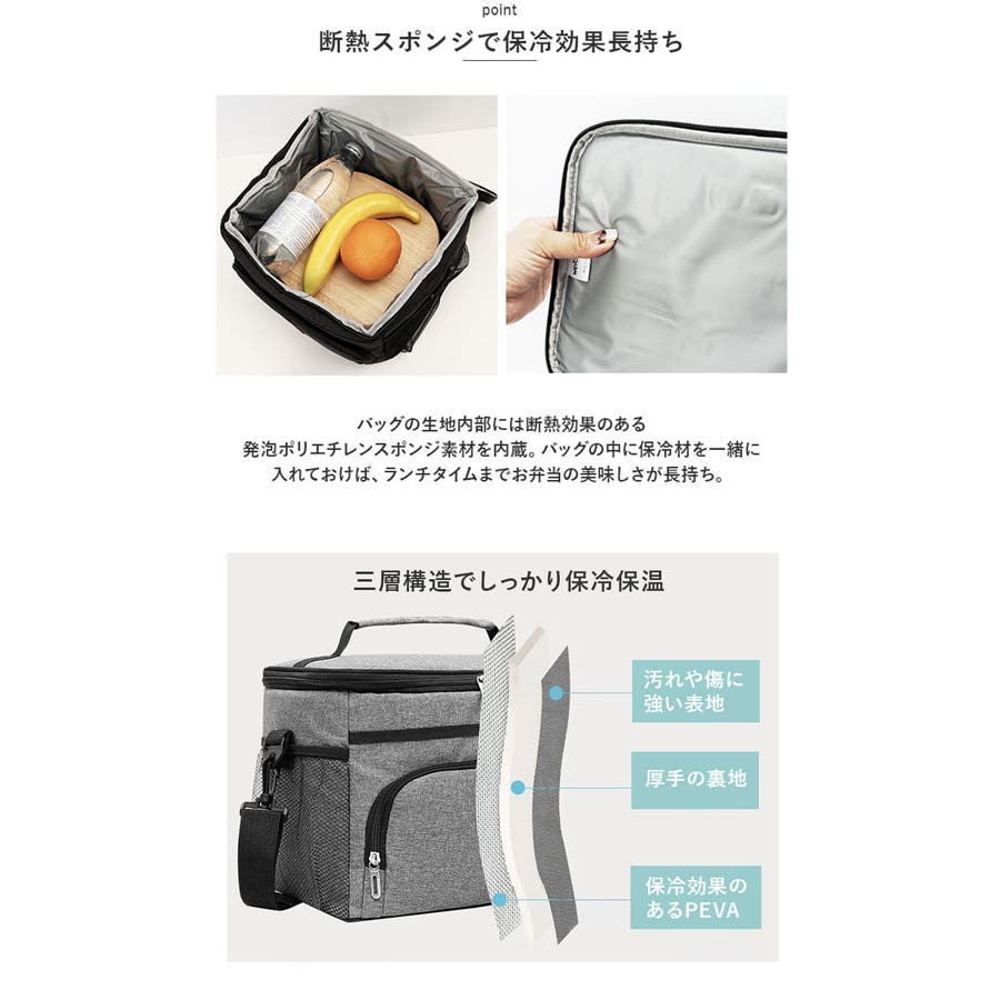 ・バッグの生地内部には断熱効果のある発泡ポリエチレンスポンジ素材を内蔵。バッグの中に保冷材を一緒に入れておけば、ランチタイムまでお弁当の美味しさが長持ち。