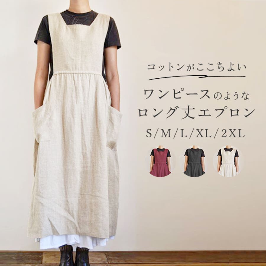 【キーワード】保育士 ロングエプロン カフェエプロン ロング丈 ワンピースエプロン マキシ丈 長め かぶるだけ レディースエプロン かわいい 可愛い シンプル 無地 キッチン用品 台所用品 敬老の日 ギフト ガーデニング